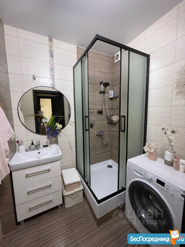 Зеркальный шкаф купе. Кухня укомплектована - обеденная зона, холодильник, микроволновка, чайник, варочная поверхность, духовой шкаф. Есть стиральная машина и водонагреватель.