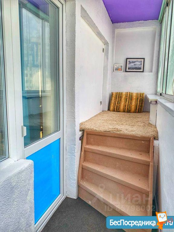 Балкон застеклен, во всей квартире установлены пластиковые стеклопакеты. На балконе сделана зона отдыха и зона хранения.