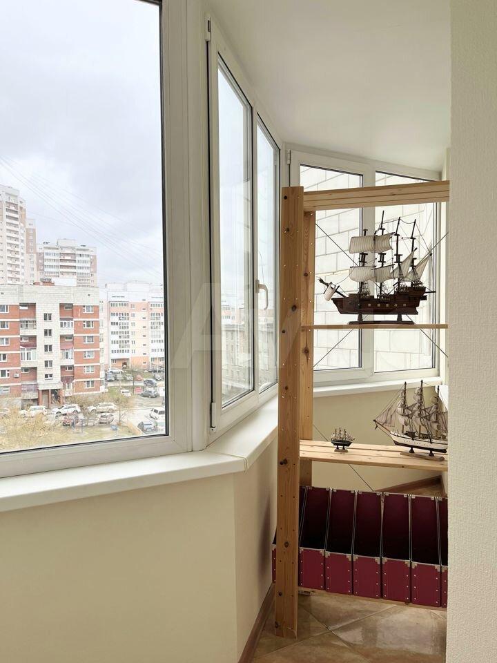 ? В комнате установлены натяжные потолки, пластиковые окна + имеется выход на балкон (5 м²)