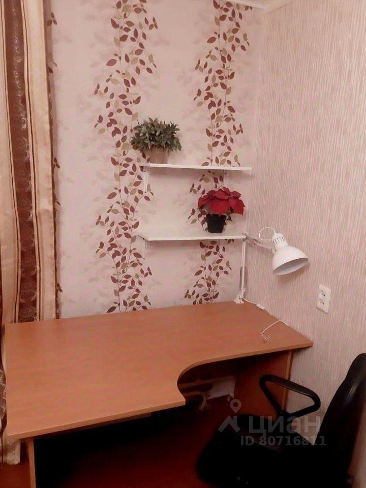 Маленькая комната 11'5 - отлично подойдёт для детской. Из мебели диван 2х местный, тумба,комод, компьютерный стол и стул. На полу ковролин. На окнах шторы, во всех комнатах.