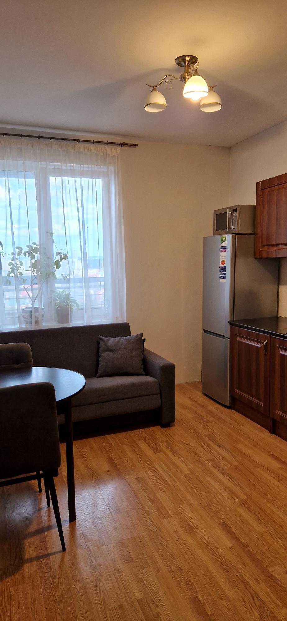 С 1 сентября на длительный срок сдается просторная, светлая и уютная 1-комнатная квартира, расположенная на последнем этаже с красивым видом. В квартире есть все необходимое для проживания: холодильник, стиральная машина, эл. плита, пылесос, диван-кровать, просторная гардеробная и вместительный шкаф (см. фото). Только гражданам РФ, людям без вредных привычек и животных. Оплата помесячно 22 000 руб., при заселении – залог (возвращается при выселении со сроком проживания не менее 8 месяцев), комм.услуги. Без комиссии.