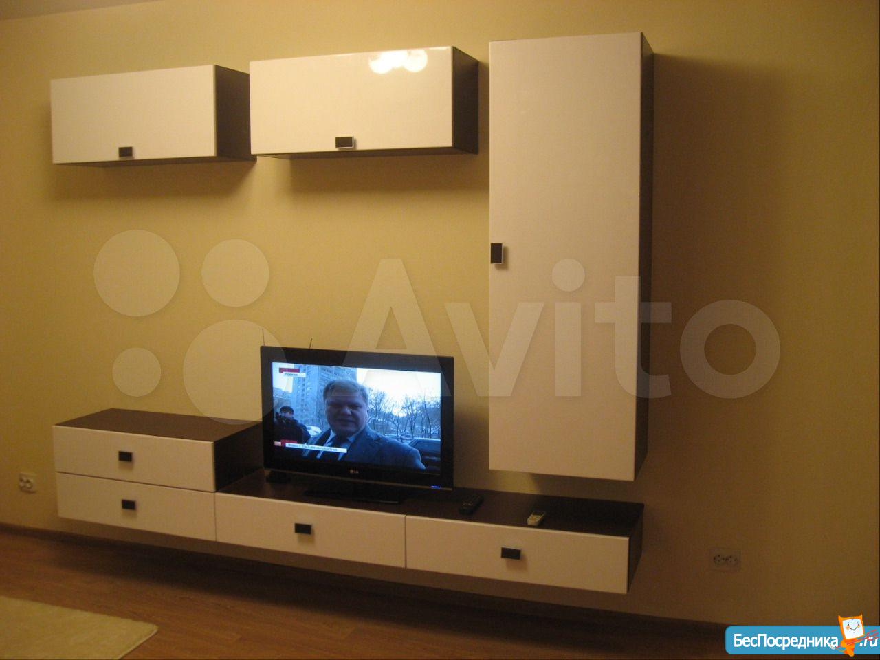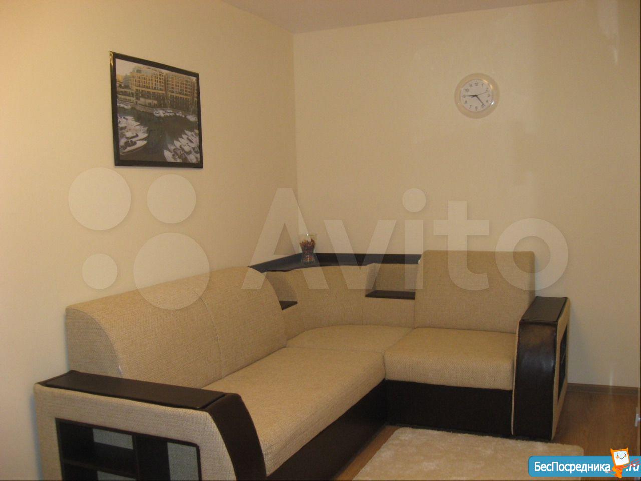 Жильё после косметического ремонта. Имеется два спальных места (двухспальная кровать), раскладной диван. Шкаф купе, прикроватные тумбочки, стенка под тв, кухонный гарнитур, обеденный стол, холодильник,микроволновая печь, телевизор, стиральная машина.
