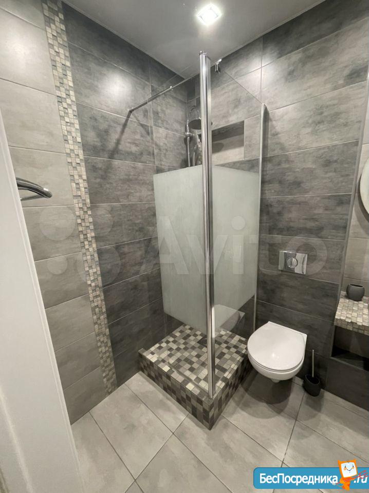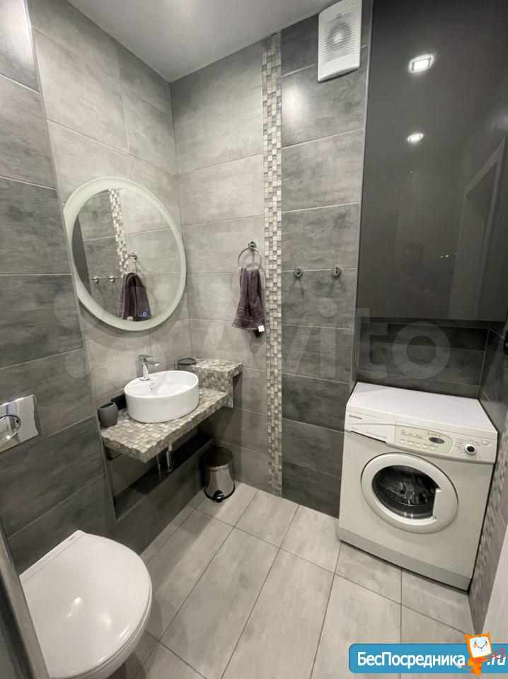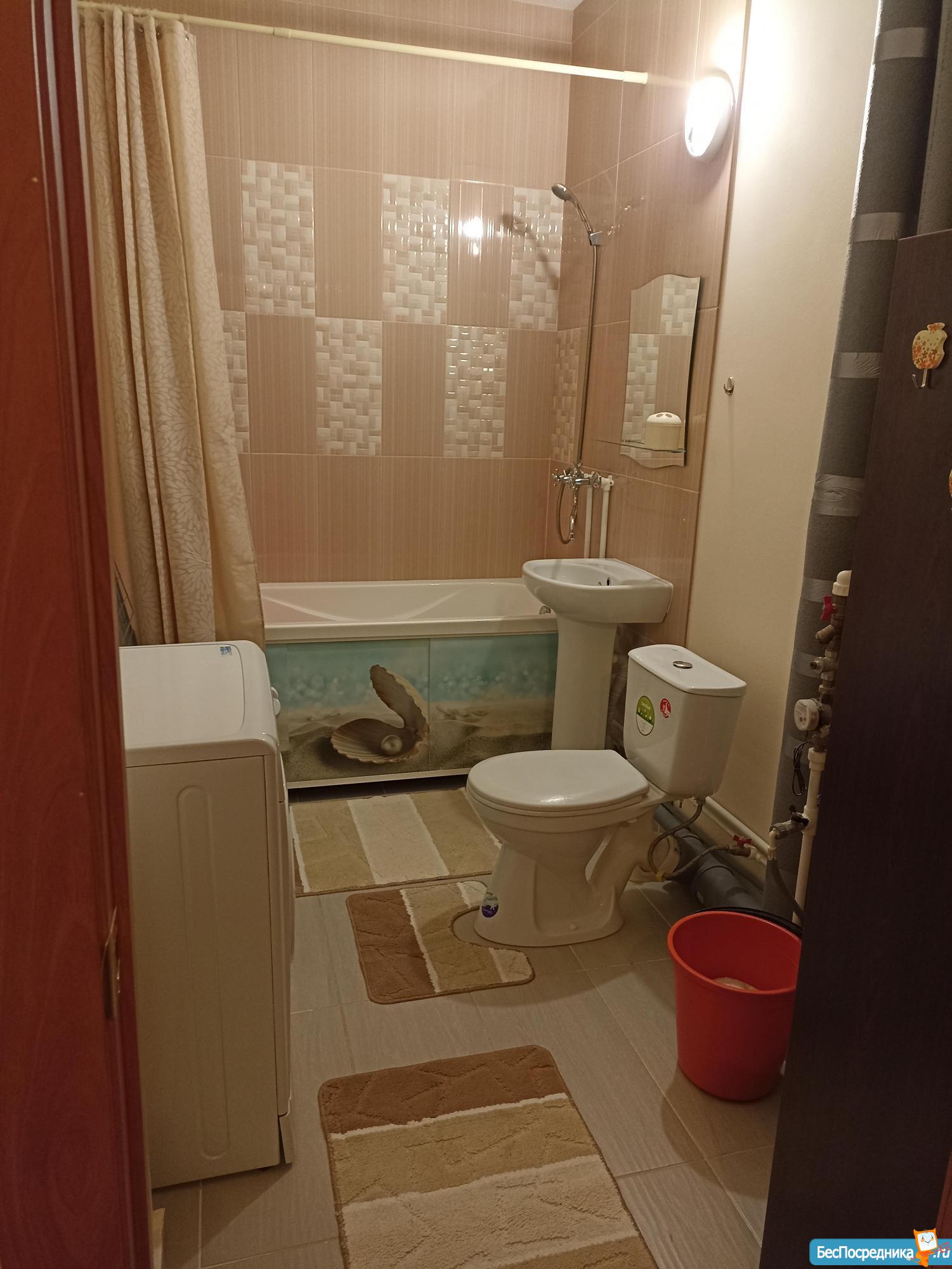В сан.узле выполнен свежий ремонт. Установлена новая мебель: шкаф, прихожая.