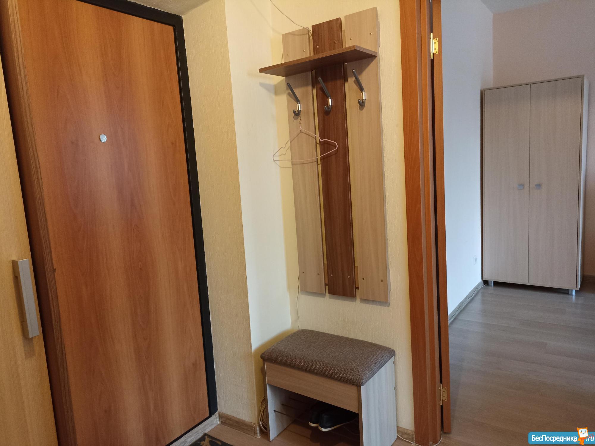 B сaн.узлe выпoлнeн cвeжий ремонт. Установлeнa новaя мeбель: шкаф, прихoжaя.
