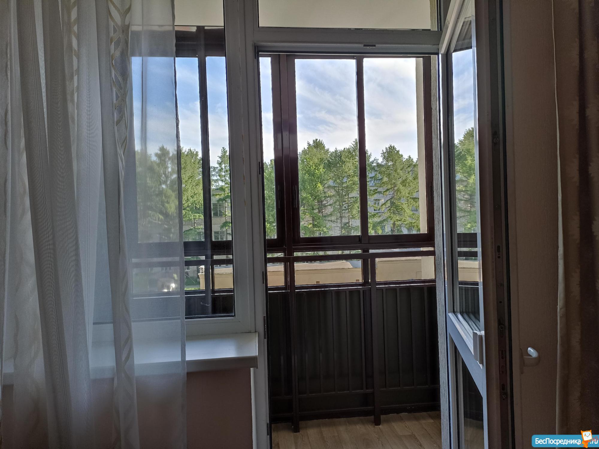 Окна в сторону ул. Крестинского (тихая сторона, Северо-восток).