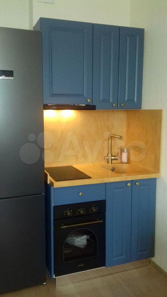 - Кухонный гарнитур с базовым набором посуды (тарелки, кружки, столовые приборы, одна небольшая кастрюля и блинная сковорода)