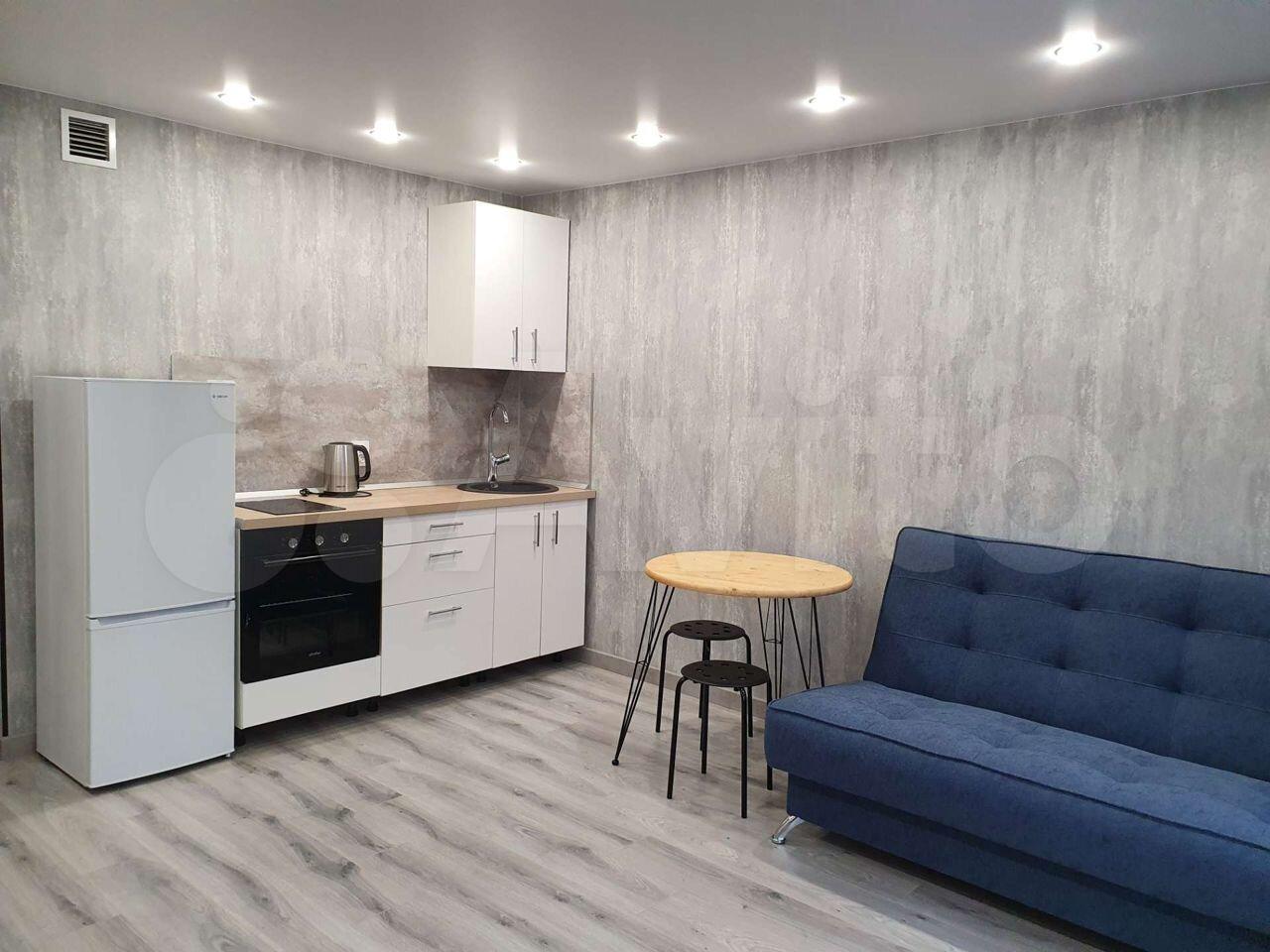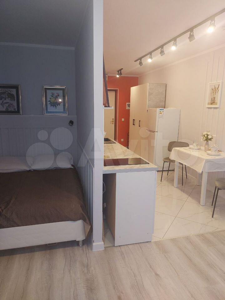 Квартира с евроремонтом, полностью меблирована и готова к проживанию.В ней ещё никто не жил. В студии есть все необходимое: на кухне — современная мебель и техника, в том числе холодильник; в комнате — удобная мебель и телевизор. Ванная комната оборудована ванной и стиральной машиной. Окна выходят как во двор, так и на улицу, поэтому в квартире всегда светло и уютно. Подключен интернет.