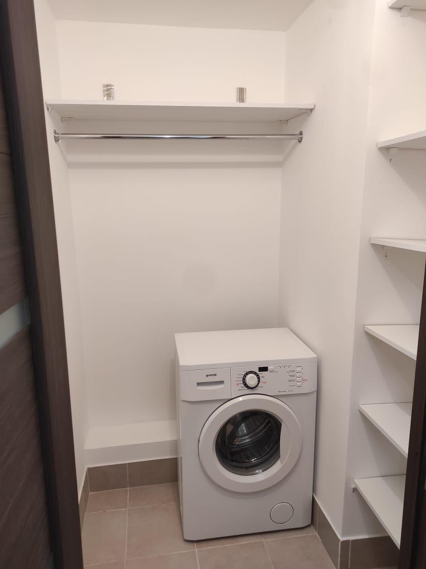 Имеется небольшая кухня, электроплита, телевизор, стиральная машина. В коридоре большой шкаф-купе.