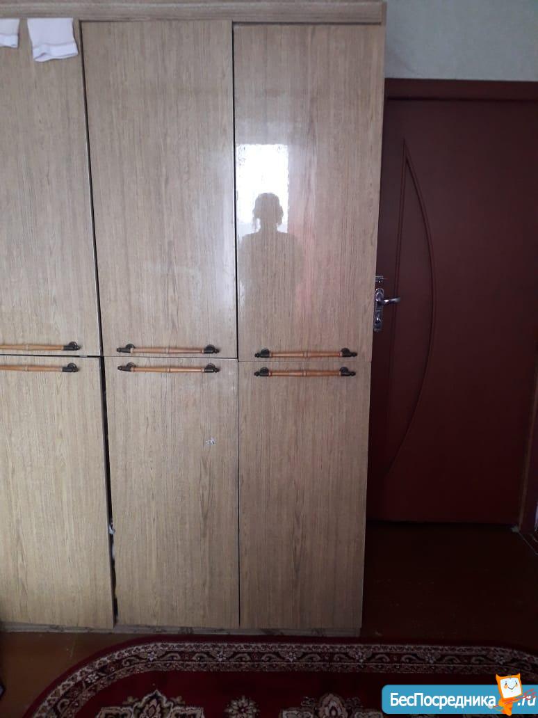 в комнате есть диван, платяной шкаф,окна ПВХ, линолеум на полу,натяжной потолок,на кухне раковина,электроплита, навесной шкаф для посуды.санУзел совместный, ванна , умывальник, унитаз.