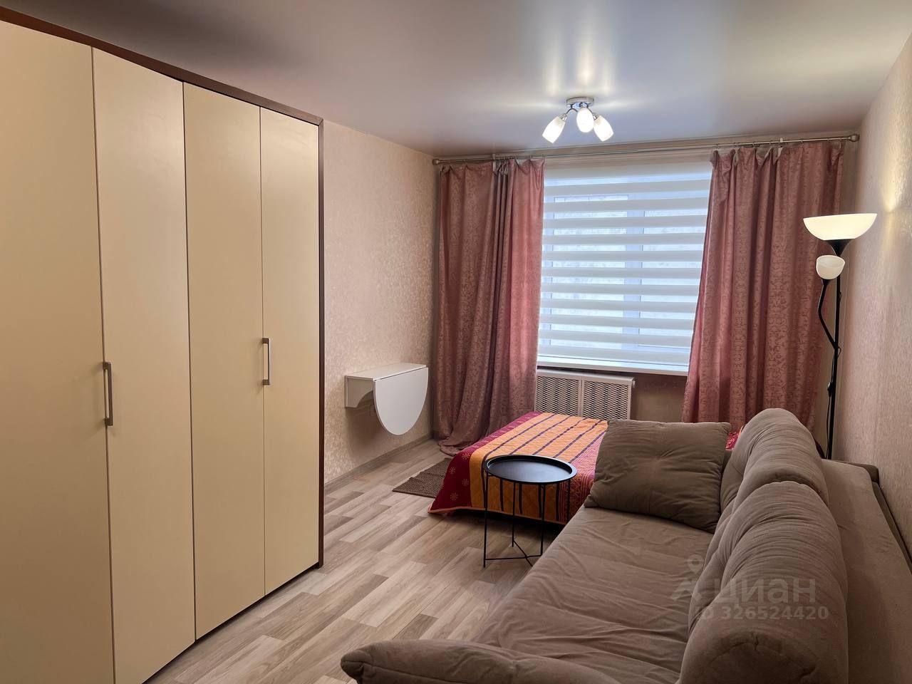 В комнате все есть для комфортного проживания: кровать, диван, ковер, шкаф для одежды, прихожая, торшер, три стула и табуретка, стол обеденный, столик чайный, столик настенный. В коридоре большой шкаф купе для хранения. И секция встроенного шкафа в прихожей для верхней одежды.