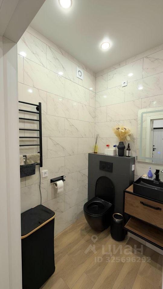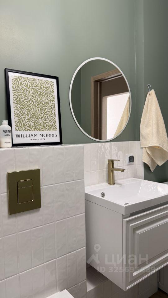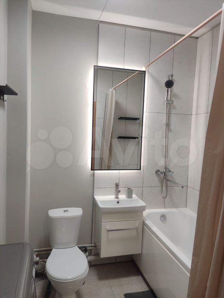 В ванной комнатке все удобства на высшем уровне: стиральная машина, порящий унитаз, электросушилка, зеркало с подсветкой. Теплый пол в ванной комнате добавит комфорта в холодные дни.