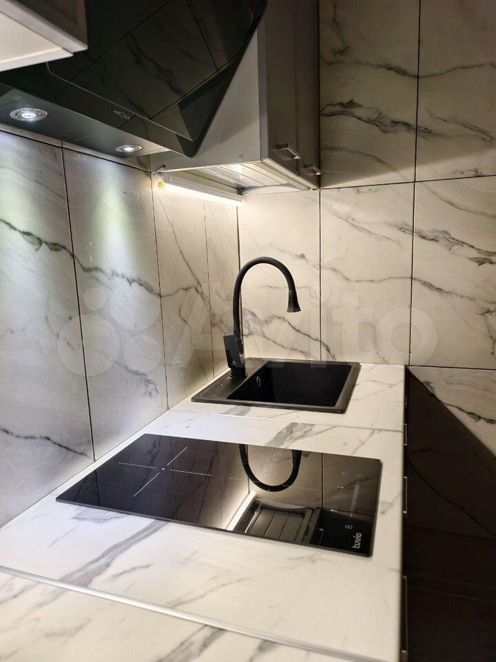 На кухне индукционная плита, имеется вся необходимая техника.