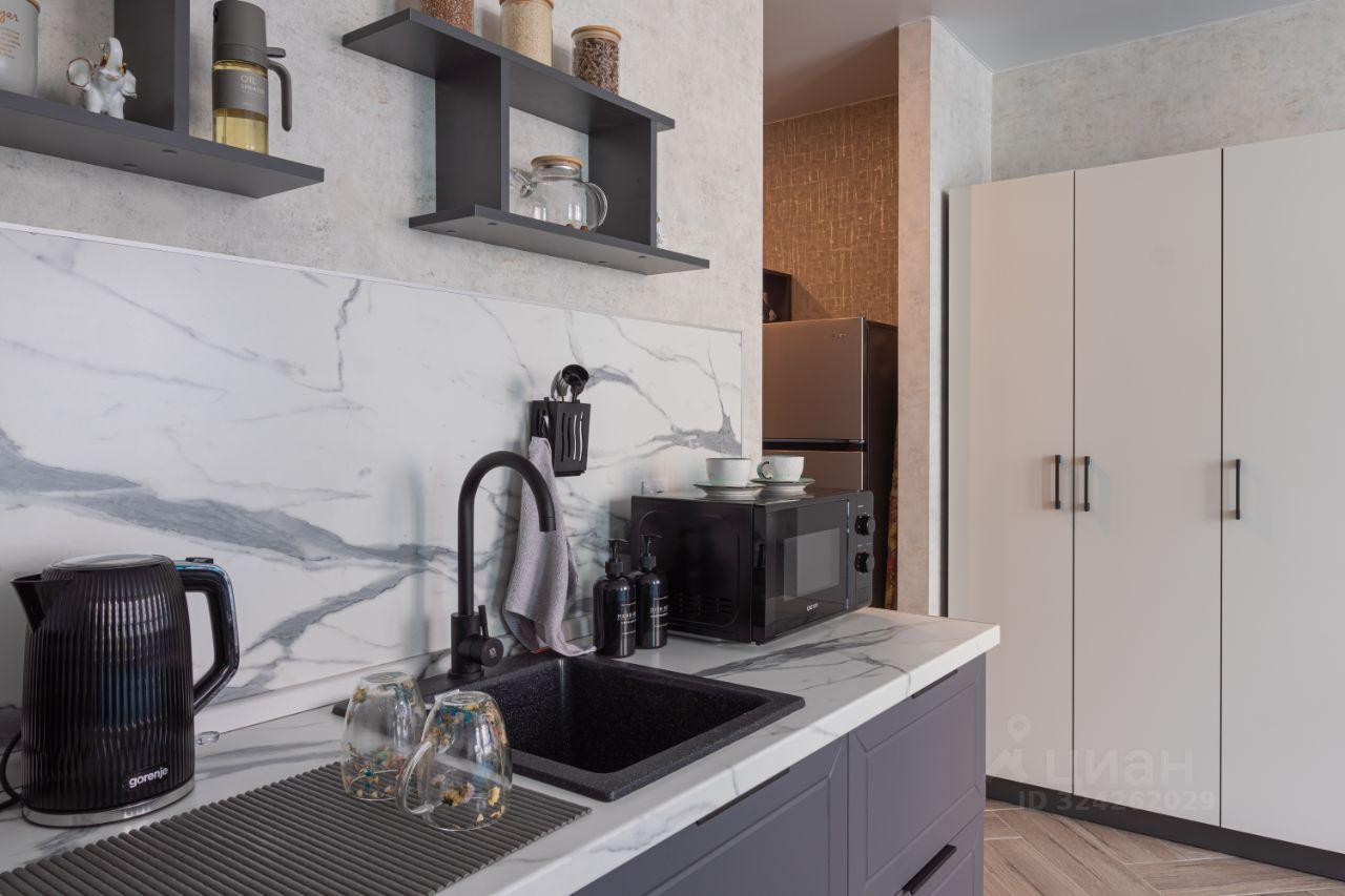 Сдаётся уютная студия с дизайнерским ремонтом в новом доме 2025 года постройки. Общая площадь квартиры — 29.6 кв. м, из которых 20 кв. м — жилая, и 9 кв. м — кухня. Апартаменты находятся на 4 этаже 32-этажного здания с высокими потолками 2.7 метра, что добавляет ощущение простора.