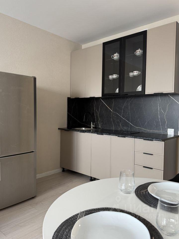 В квартире есть все необходимое- новый кухонный гарнитур, большая барная стойка, посуда, бытовая техника.